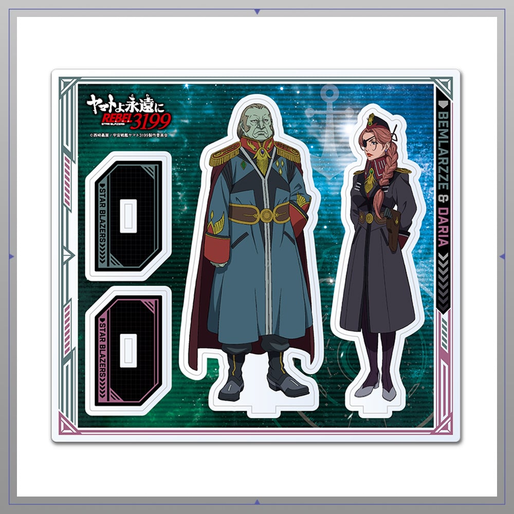 ベルム・フォン・ベムラーゼ&リュドミ・ダーリヤのアクリルスタンドです。第一章から第五章へ引き続き、部屋に飾って『ヤマトよ永遠に REBEL3199 』の世界を楽しみましょう。