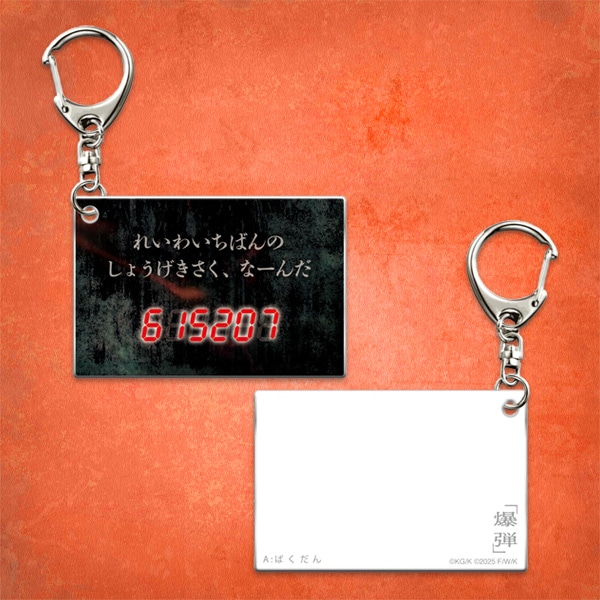 映画『爆弾』よりアクリルキーホルダーが登場!クイズのようなデザインが面白いキーホルダーです。コピーライト