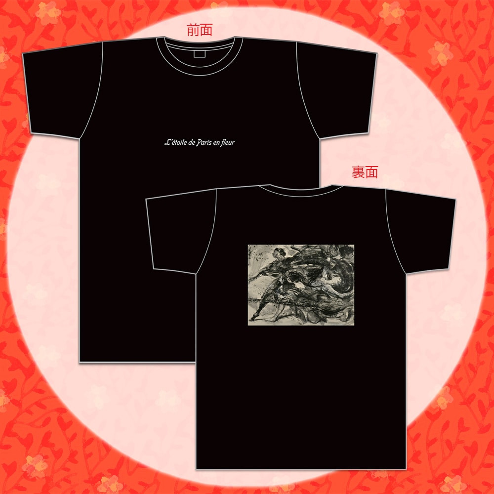 『パリに咲くエトワール』のTシャツ(Lサイズ相当)が登場!表面は英字ロゴのシンプルなデザイン。裏面は劇中に登場する絵画がプリントされており、お洒落です!