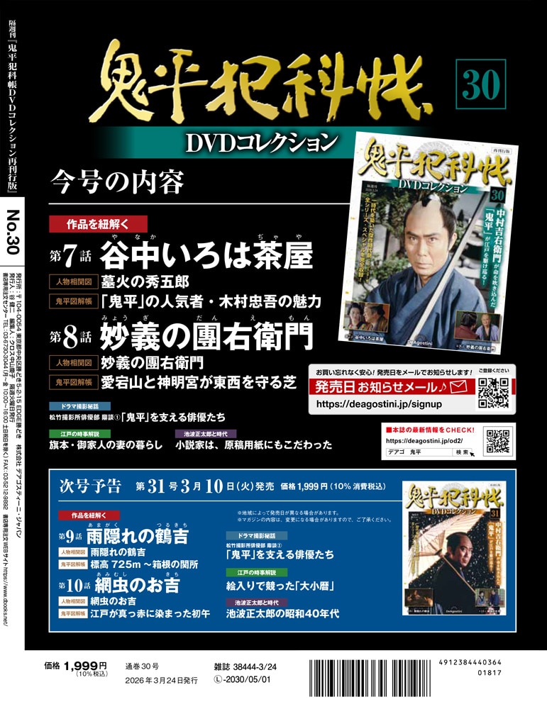 鬼平犯科帳DVDコレクション 再刊行版 第30号